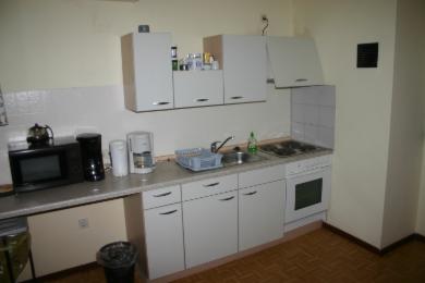 Unseren Gästen stehen insgesamt 2 komplette Gästeküchen mit Herd, Backofen, Kühlschrank, Mikrowelle, Geschirrspüler, Kaffeemaschine und Geschirr für die Selbstversorgung zur Verfügung. Eine Bäckerei mit Cafe, ein Lebensmittelmarkt und ein Discounter sind in der Nähe.